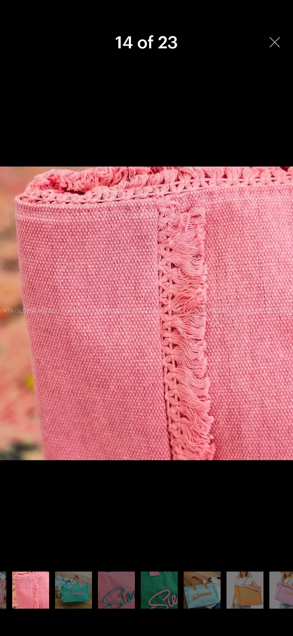 Gingham Terry Cloth Fringe Beach Bag